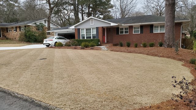 Dropped my tif tuf 1 notch (2nd to lowest on hrx217) to make the full scalp easier. Also spread some sand next to new driveway. It spread really easily which makes me feel a little more confident about my upcoming spring leveling project.