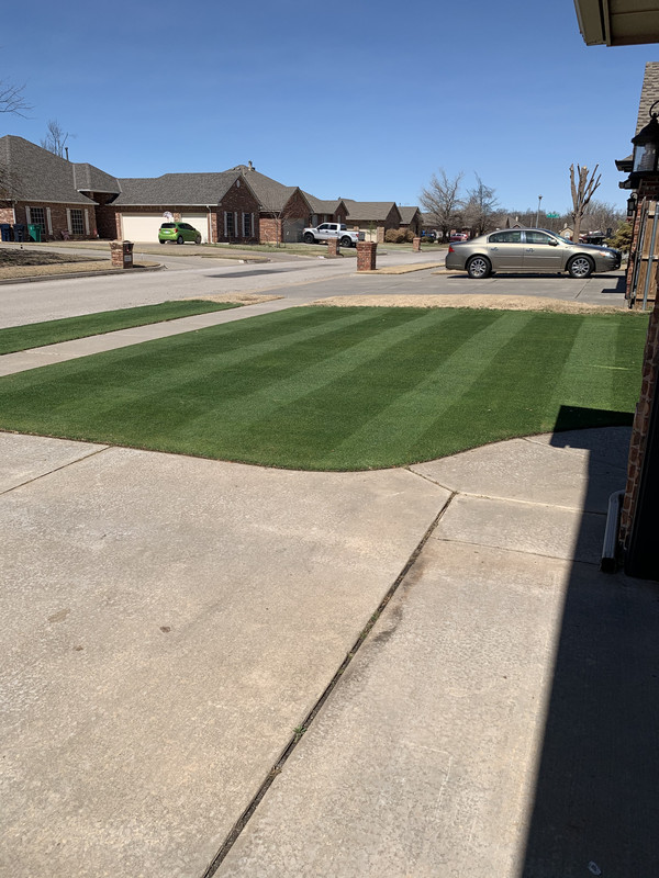 Scalped several days ago and just finished the first mow. Bermuda still waking up but already showing a little striping action. I guess not bad considering the trees are still bare