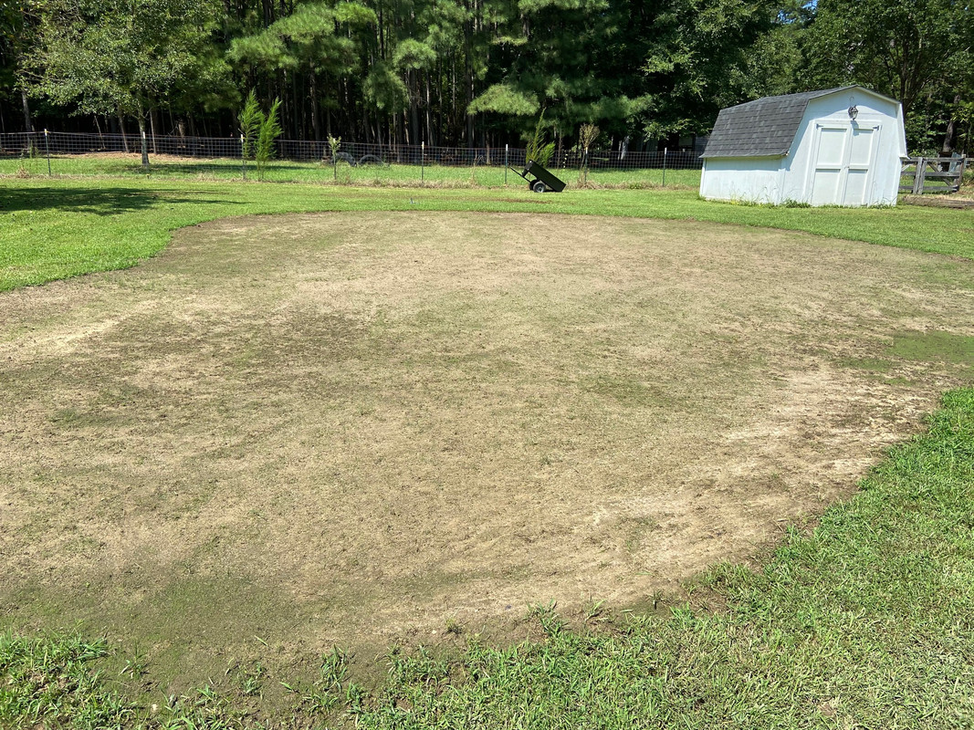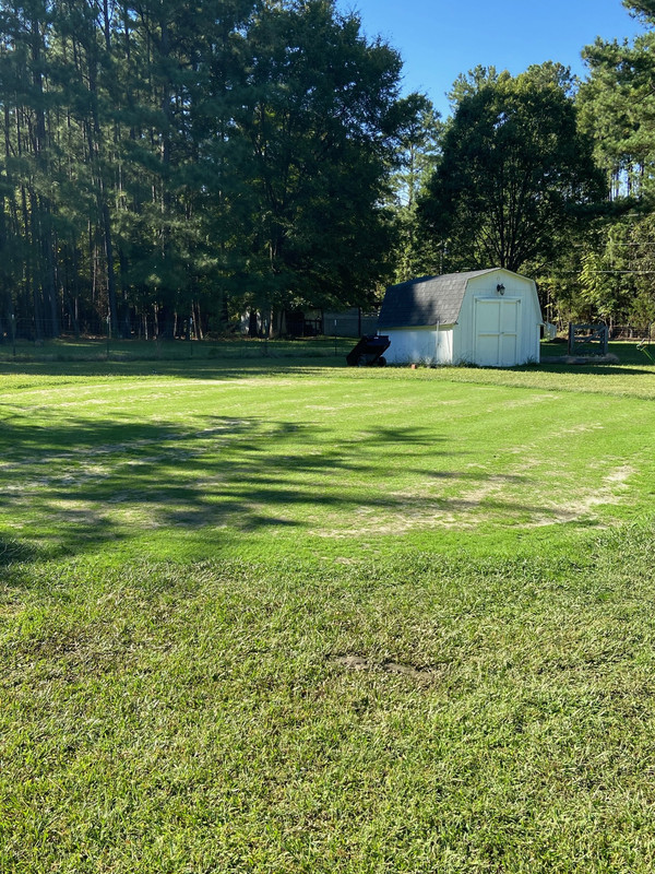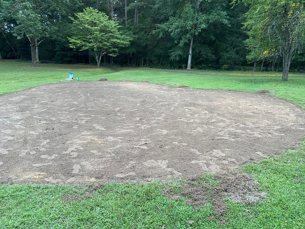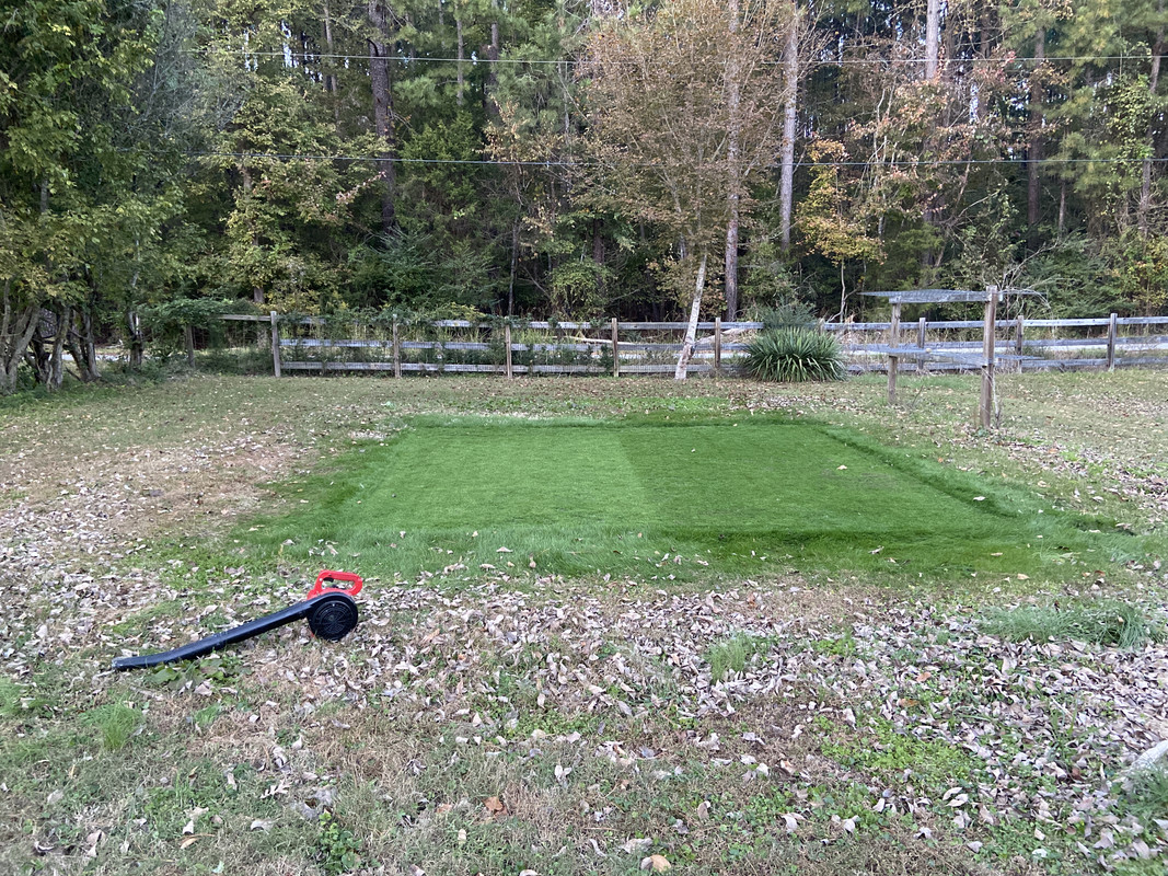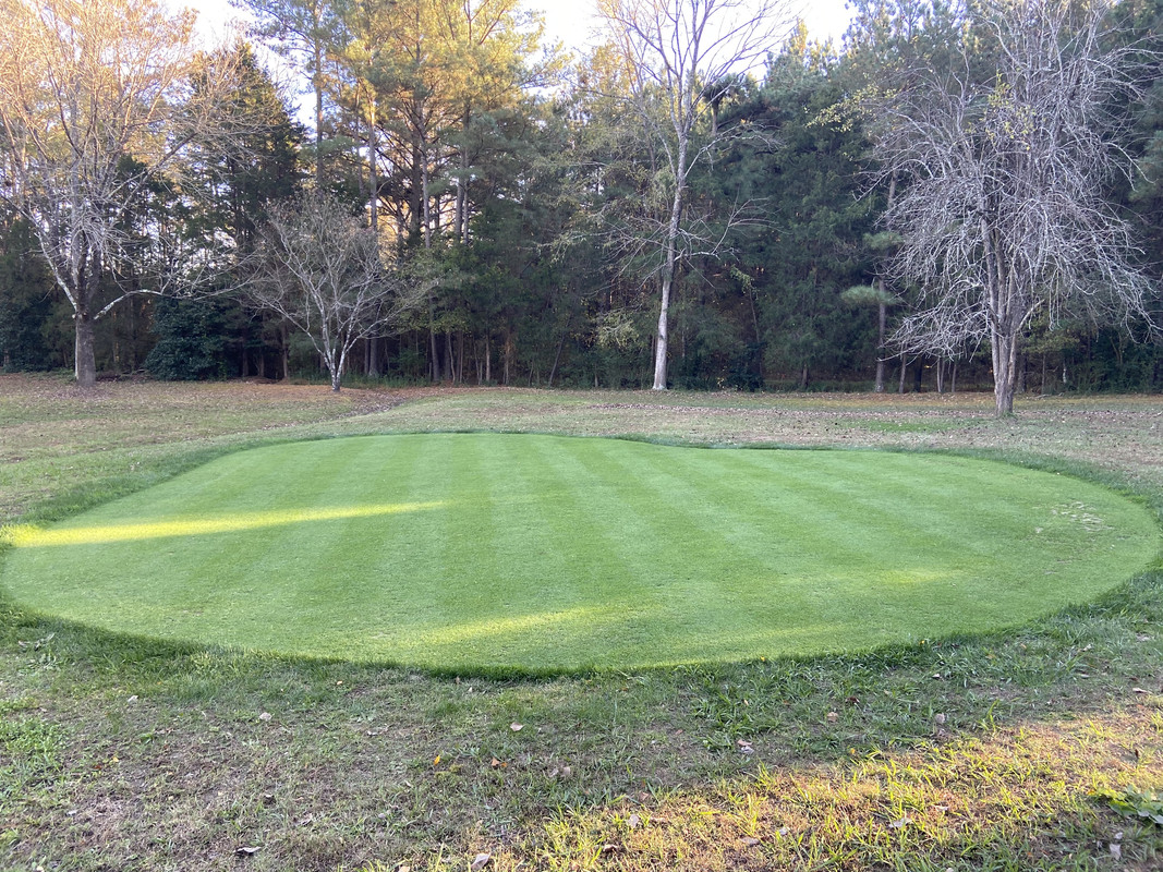 I started by marking out the green and tee space and spraying it with a combo of glyphosate and diquat. The green is approximately 2500 square feet and the tee is about 500 square feet. I then tilled the soil a few weeks later in multiple directions to loosen it up and shred any plant material that was there. I graded the tee with a gentle slope (1-2 percent) to provide adequate surface drainage and then sprigged it on 8/23 with 419 bermuda that will be overseeded this fall with perennial ryegrass. More on that below. After tilling the green in multiple directions, I did some rough grading that provided a few soft and interesting contours but without leaving any low lying areas in the green itself. This weekend the plan is to get a few thousand pounds of sand tilled into the existing soil to improve drainage and dilute the organic matter. I will follow this up with detail grading and if the weather holds up I hope to seed it with Penncross creeping bentgrass as soon as the surface is prepared. I will update this post with pictures and additional information about the project. I'll be making the first cut at 0.200" approximately 2 weeks after the seed goes down and will slowly drop it down to putting green height as it matures and increases in density. Mowing with a JD 220B with a grooved front roller. I will be applying weekly foliar fertilizer sprays during the growing season.