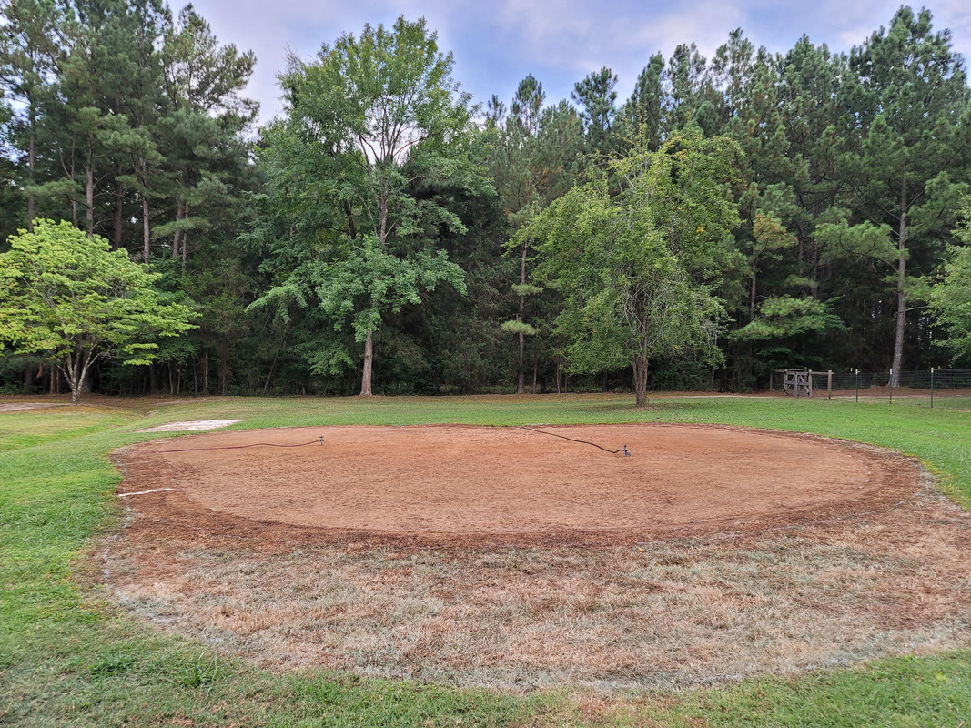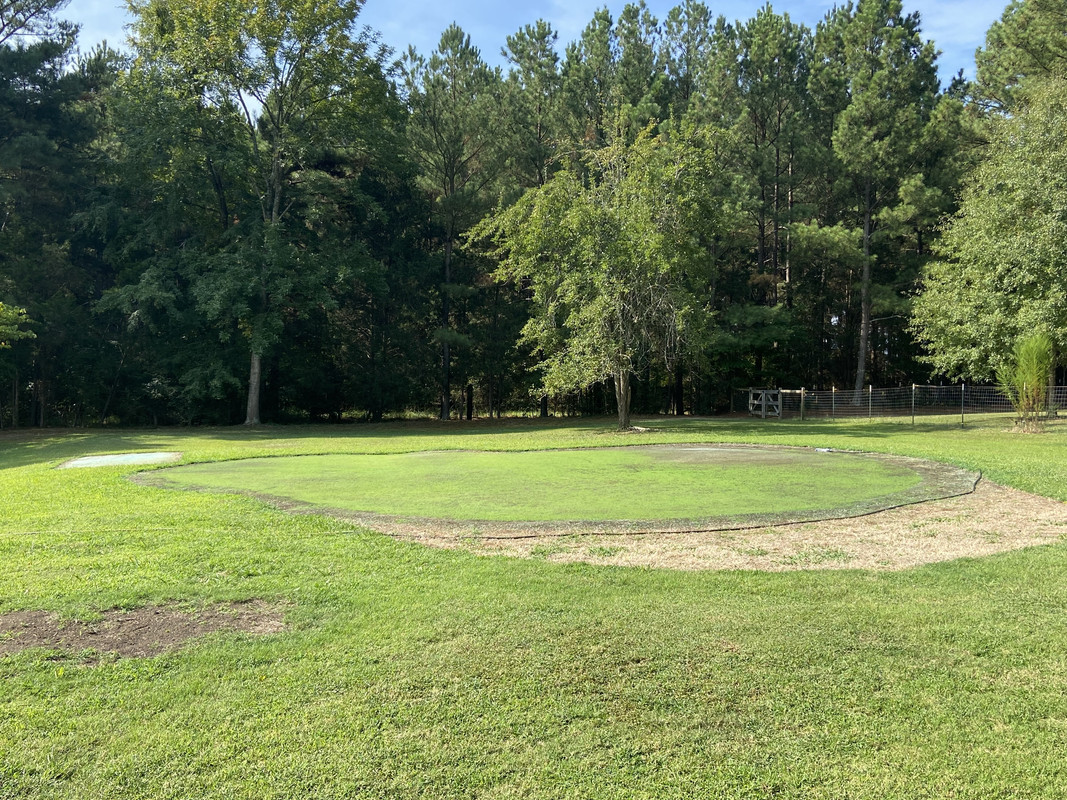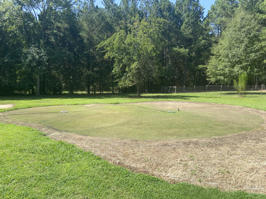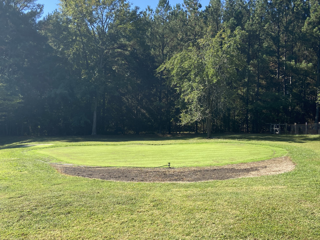 I started by marking out the green and tee space and spraying it with a combo of glyphosate and diquat. The green is approximately 2500 square feet and the tee is about 500 square feet. I then tilled the soil a few weeks later in multiple directions to loosen it up and shred any plant material that was there. I graded the tee with a gentle slope (1-2 percent) to provide adequate surface drainage and then sprigged it on 8/23 with 419 bermuda that will be overseeded this fall with perennial ryegrass. More on that below. After tilling the green in multiple directions, I did some rough grading that provided a few soft and interesting contours but without leaving any low lying areas in the green itself. This weekend the plan is to get a few thousand pounds of sand tilled into the existing soil to improve drainage and dilute the organic matter. I will follow this up with detail grading and if the weather holds up I hope to seed it with Penncross creeping bentgrass as soon as the surface is prepared. I will update this post with pictures and additional information about the project. I'll be making the first cut at 0.200" approximately 2 weeks after the seed goes down and will slowly drop it down to putting green height as it matures and increases in density. Mowing with a JD 220B with a grooved front roller. I will be applying weekly foliar fertilizer sprays during the growing season.