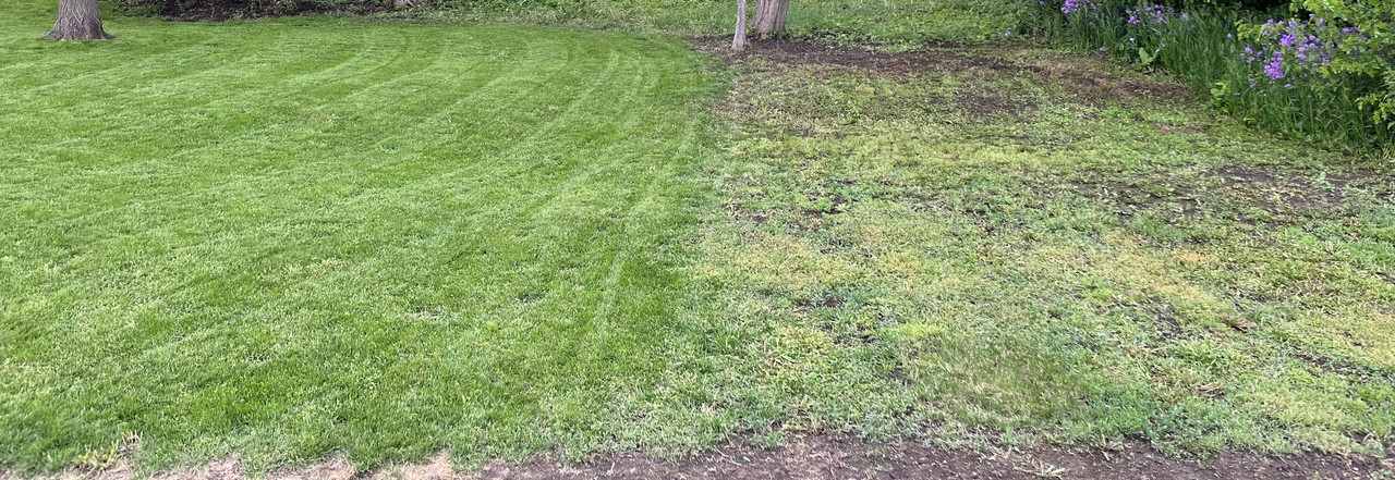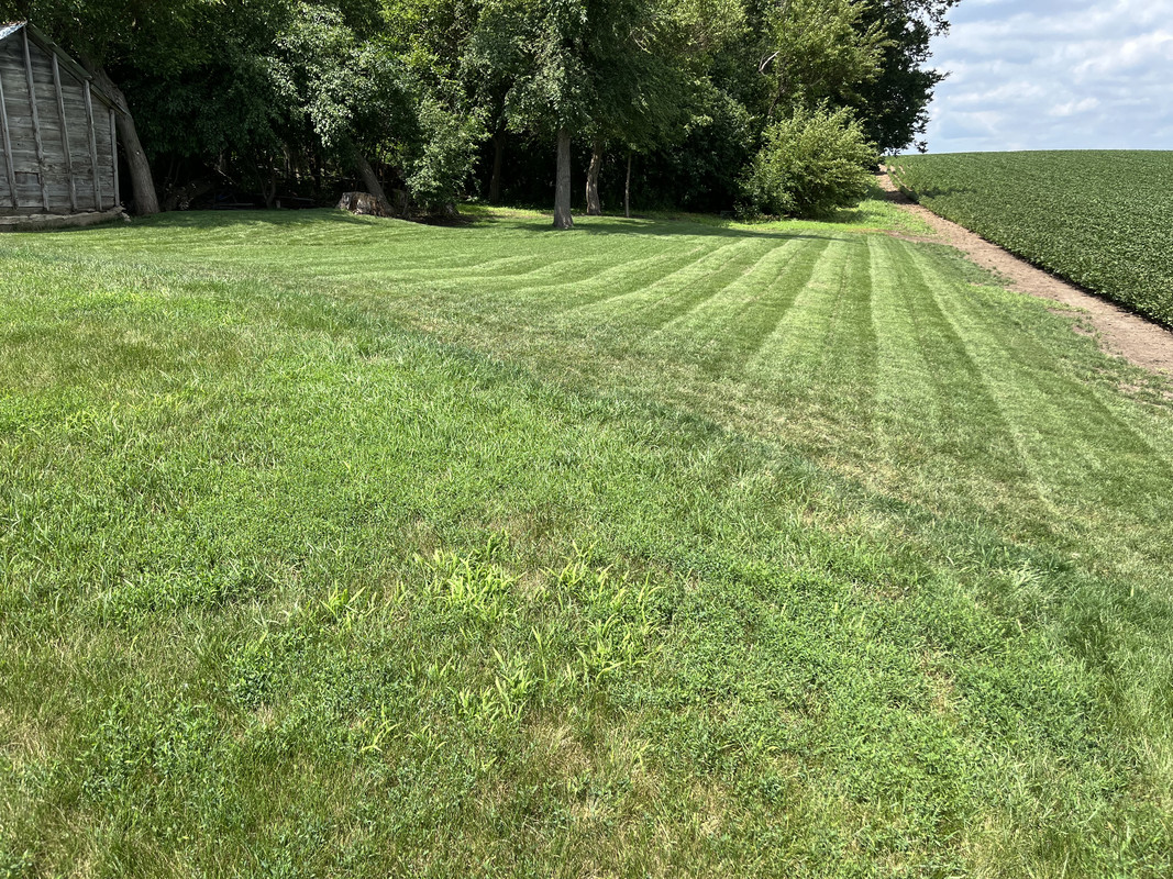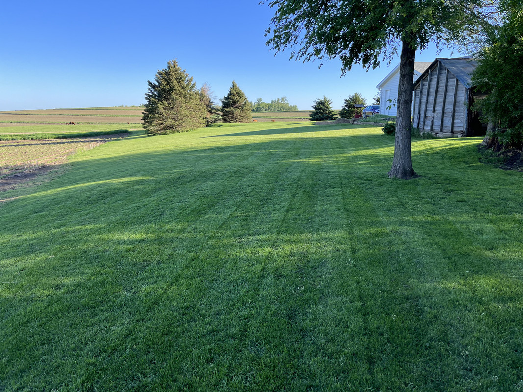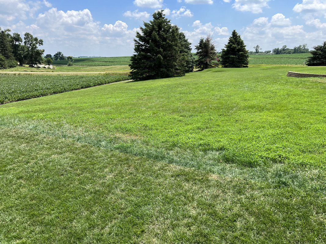 Alors... j'essaierai de faire court pour l'historique. Dakota du Sud, ferme familiale, juin 2020... nous avons une pandémie. J'ai eu la brillante idée de découper une zone de la pelouse pour en faire un trou de golf. Je l'ai rasée à blanc. Moi, le génie, j'ai même étouffé une zone avec du sable en pensant que cela aiderait à niveler la zone autour du trou que j'avais creusé. Bonus : vous pouvez même voir une petite bande de "fairway" que j'ai rasée en haut à droite.