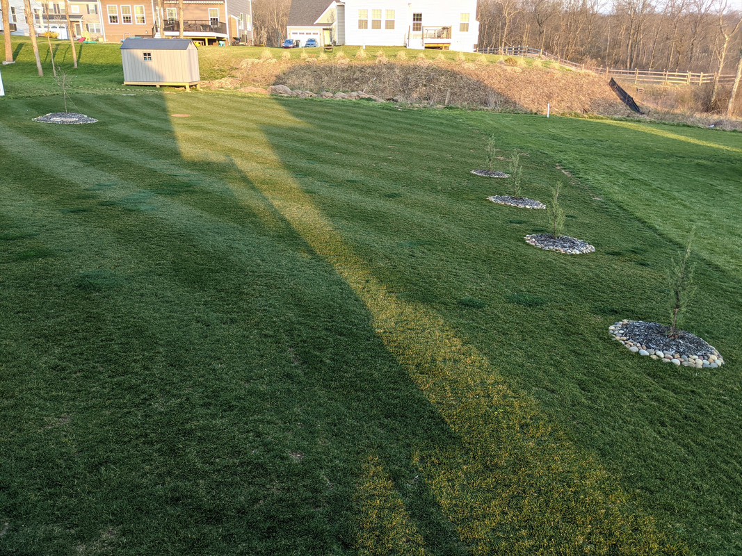 Seed blend is 33% Prosperity, 33% Moonlight SLT, and 33% Blue Velvet. According to my research, these were the KBG types most likely to produce bluish tones. My main goal for the lawn color wise is to have a blue hue.