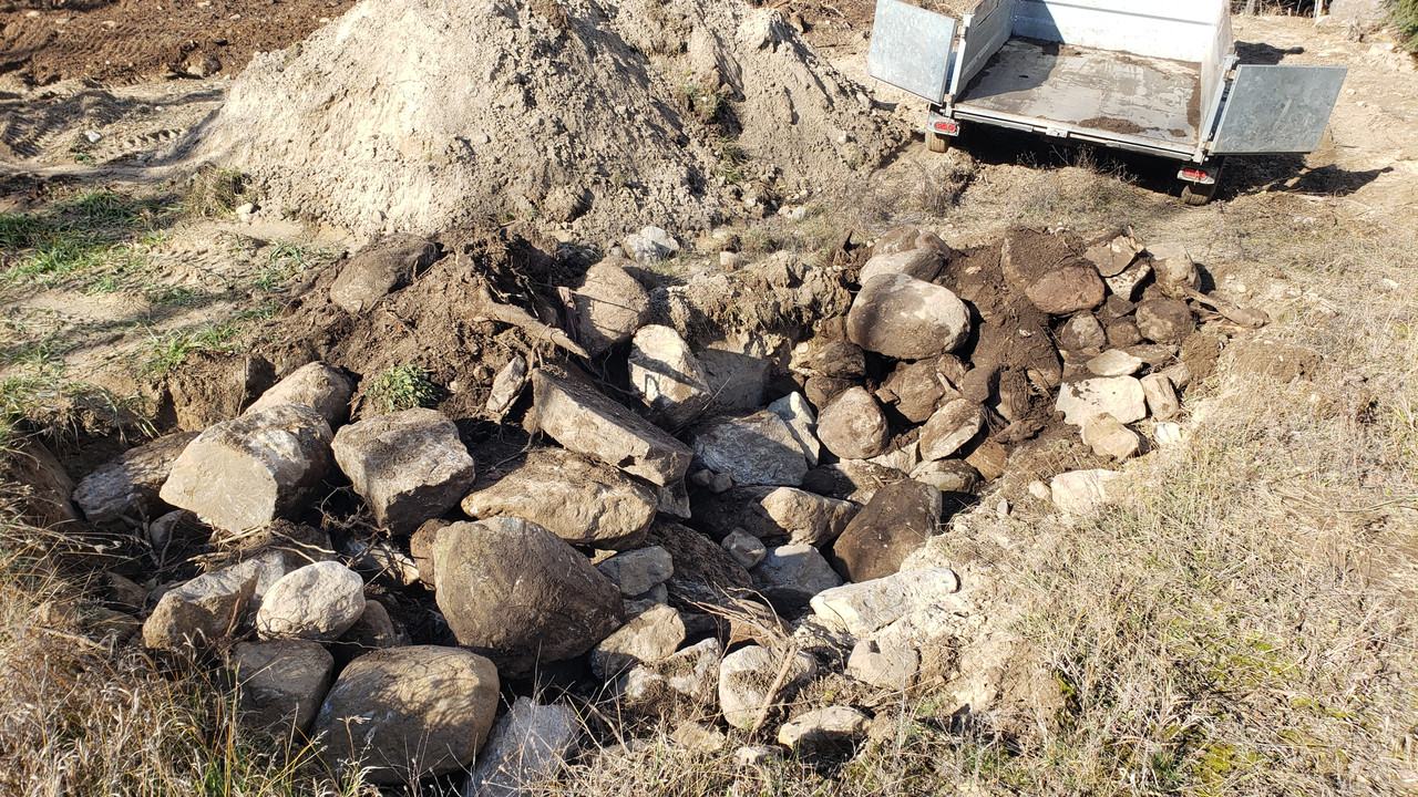 So I'll try and find some older pictures from a year or two ago up until now. We recently ripped the entire flat area up to run geothermal piping for heating and cooling the house. The land is leveled back out after the pipes were buried 5 feet down and looks good, but is sandy base with some river rock in it. Thats where we sit today.