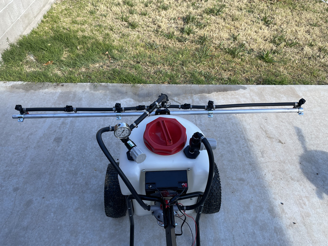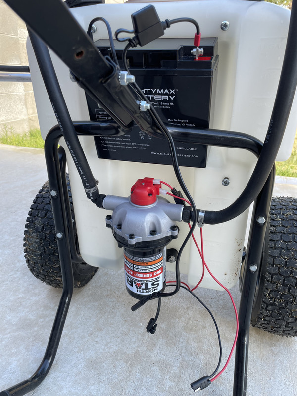 Coming soon - Pump upgrade, battery upgrade, in-line filter, pressure regulator and upgrading to a 4 nozzle boom as well. I like the tank and frame. They have great stability so I figured I'd double down on it.
