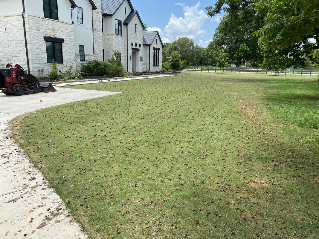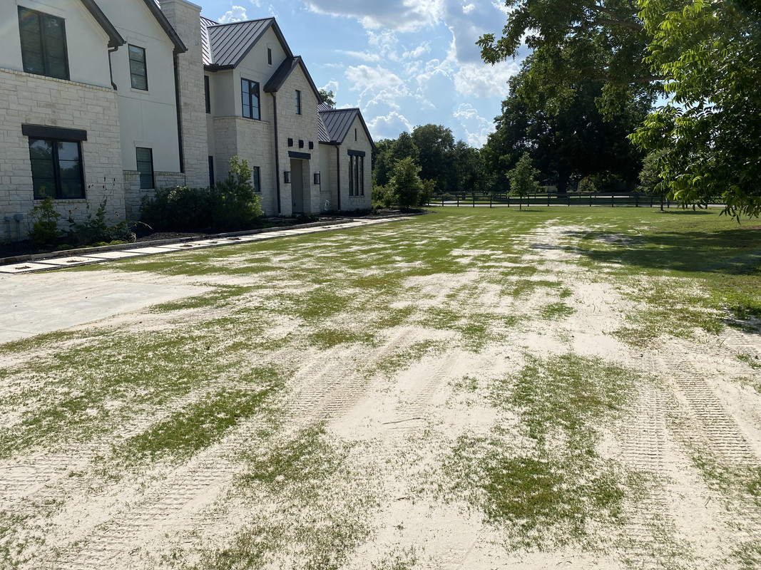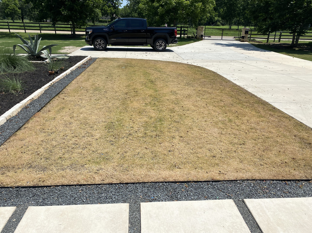 A couple years later the house was done, and we had sod around the exterior. The lot is nearly 3 acres, and it didnt make sense at the time to sod and irrigate the entire thing, so we sodded out from the house about 40-60" with tifway 419 Bermuda.