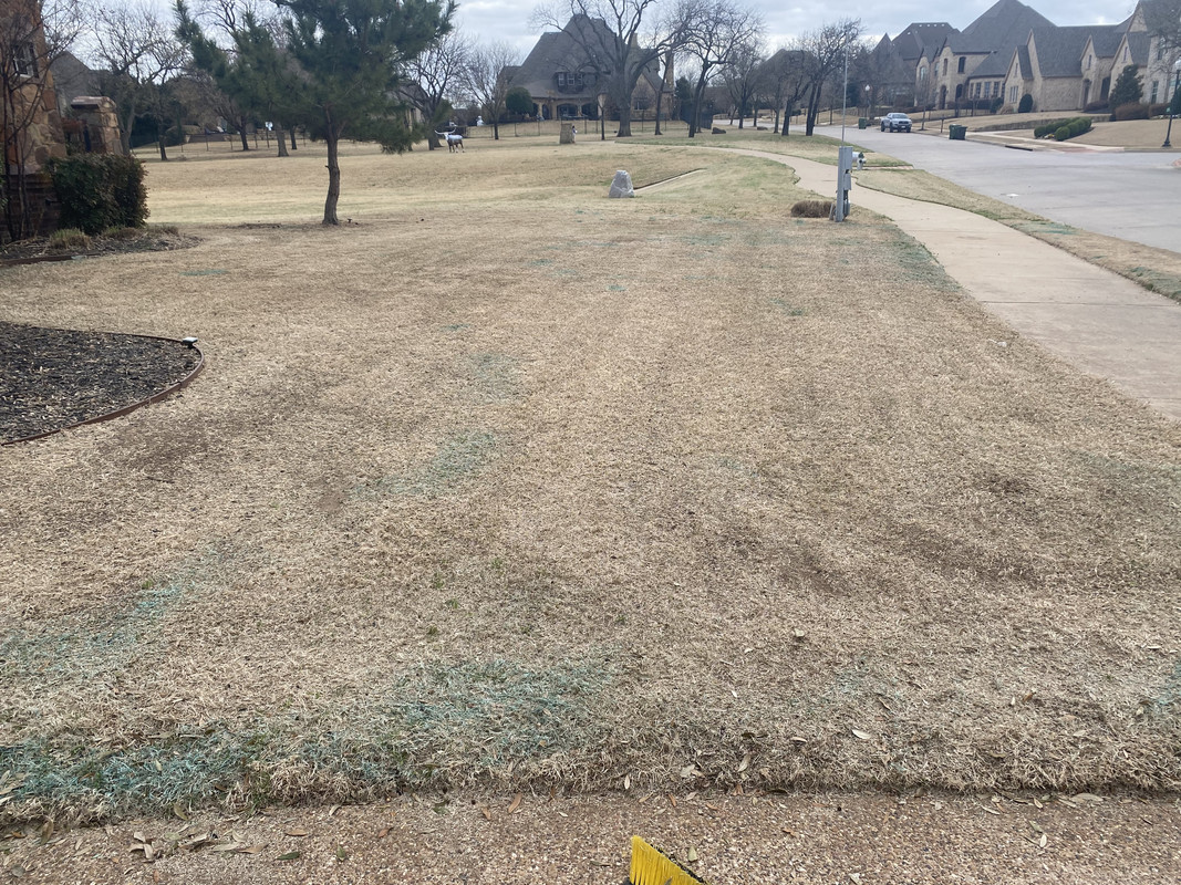 Ich habe eine Fläche punktuell nivelliert, meinen Landschaftsgärtner im April gefeuert und die Pflege übernommen und so gut ich konnte gedüngt.