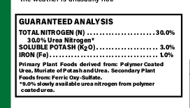 For cost purposes, for fast-release nitrogen I usually use plain urea 46-0-0. However, what I have been purchasing for that has relatively large prill, so it is hard to spread a small amount evenly, leading to a "splotchy" effect in the lawn. Some of the folks here, particularly those with smaller lawns, spray their weekly fertilizer applications to get more uniform coverage. Of course, getting more uniform coverage in spraying requires the person doing the spraying to develop good spraying technique.
