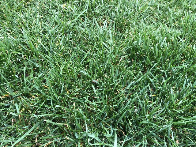 La photo montre ma pelouse après le déchaumage et l'aération. Les déchets ont été enlevés. Pour référence, cela ressemblait à l'herbe de l'autre côté de la rue. Peut-être un peu mieux.