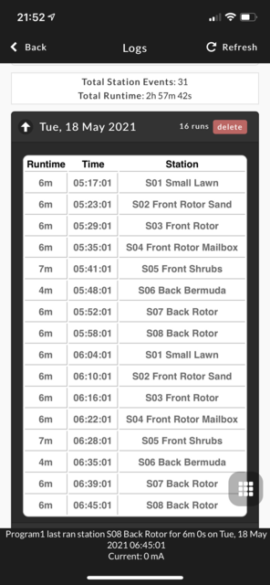 16k turf total, roughly 2/3 Bermuda and 1/3 Zoysia, all irrigated. Six zones on hunter I20 SS PRB(40psi) rotors with 2gpm nozzles. Two zones on hunter mp rotators, one of which is shrubbery.