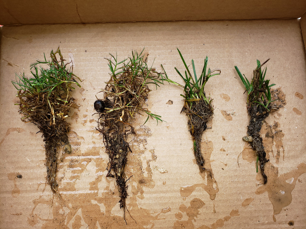 Top 2 plugs are humic treated, bottom are native soils which are clay, sand and pebble.