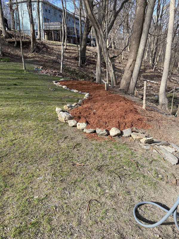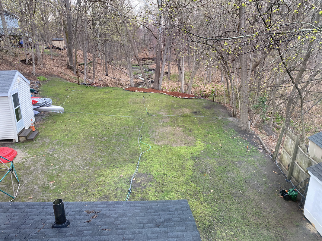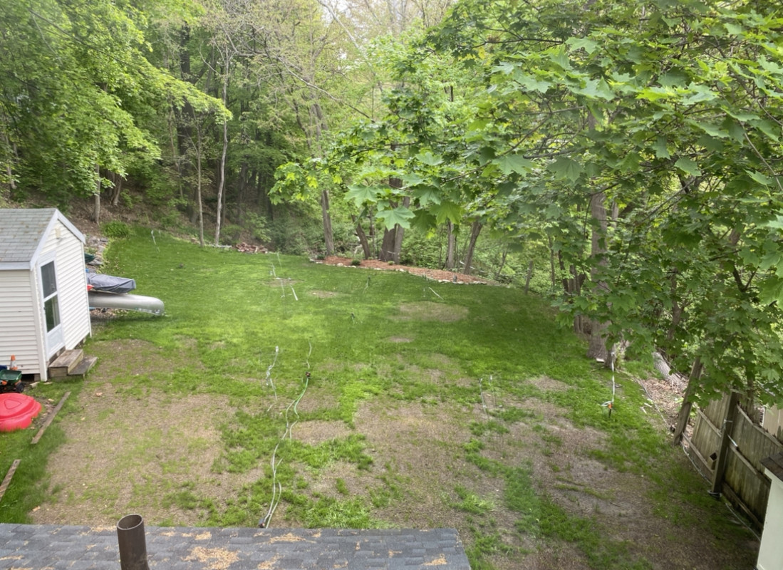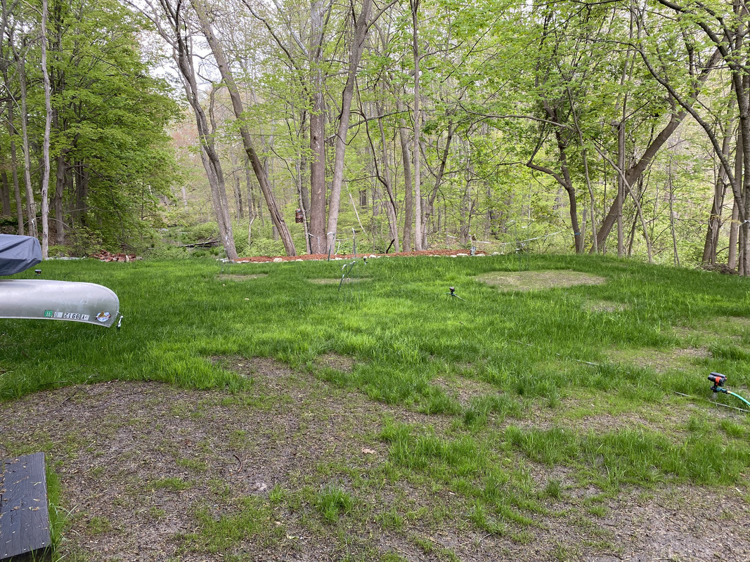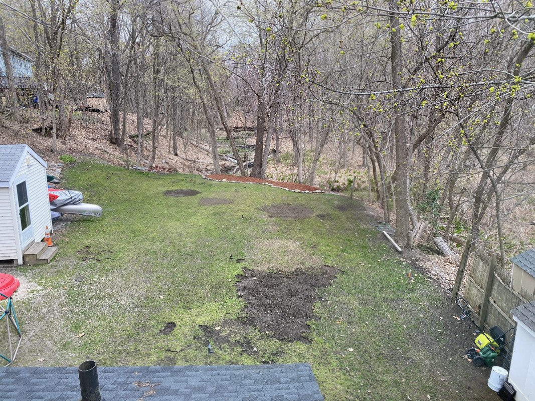 Then spring 2020, the Pandemic hit... so I took out my anxiety in the yard. This is when we started finding all the weird buried crap. I also planted approximately 37 gardens, beat back a bunch of invasives, and dug out a giant hedge infested with bittersweet. We wanted to try grass again, and we accidentally bought ANNUAL ryegrass seed, (again.... wicked inexperienced). I had no idea ANNUAL grass seed was a thing. So, expectedly.... it died.