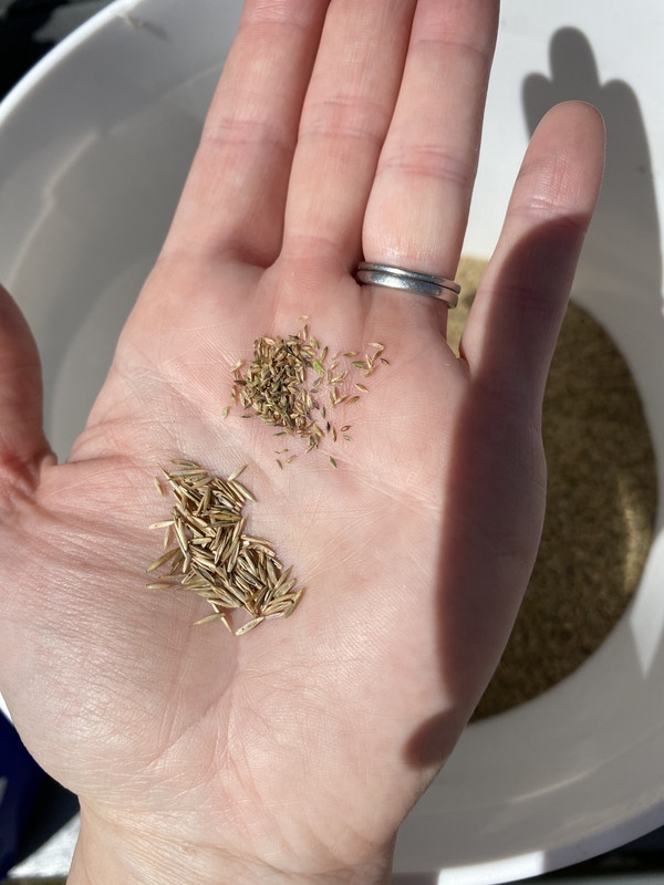 Summer 2020, we did sun and shade again. But again not enough water, because I didn't know seeding in summer was dumb... and then we had.... "The Crabgrass Explosion of 2020". I briefly got SO excited that grass was GROWING..... then realized it was almost ALL crab grass, and plantain.