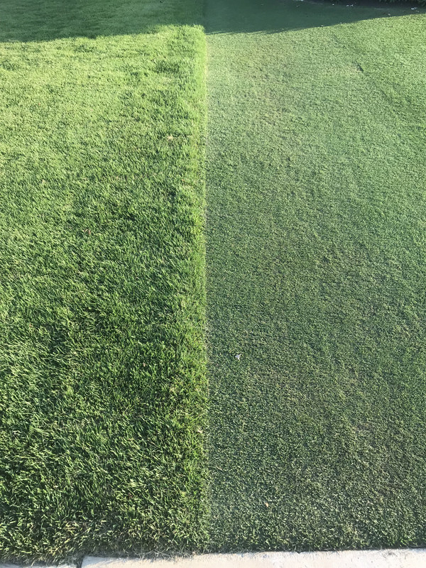 My next door neighbor has Myers Zoysia HOC 3 in vs Tif419 HOC 5 mm