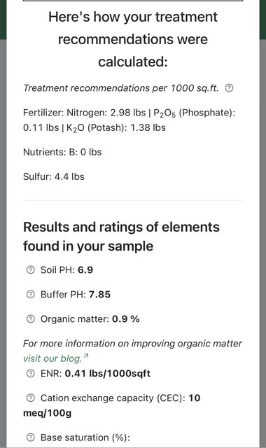 I scarified and de-thatched with my Sun Joe early summer and still need to do a core aeration as well. Yard still isn't where I would like it to be health-wise so I am hoping you all can help interpret some of this data from my soil test. I did it when the Lowe's kits went on sale recently and am not real positive which lab they used?
