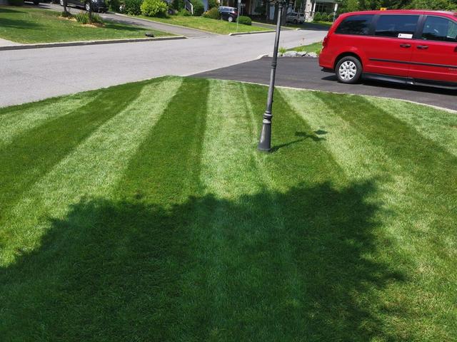 All of that being said, I think it is looking good for a fescue lawn that has been through a summer. And I like the mowing pattern.