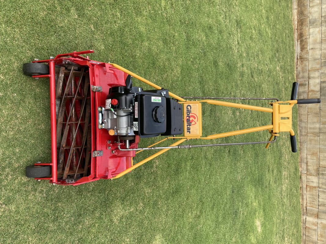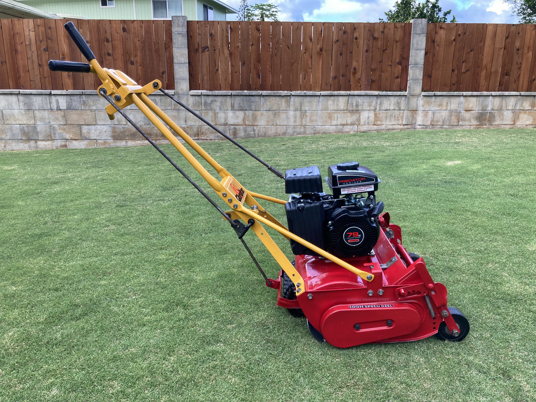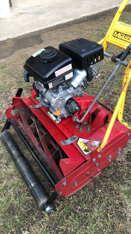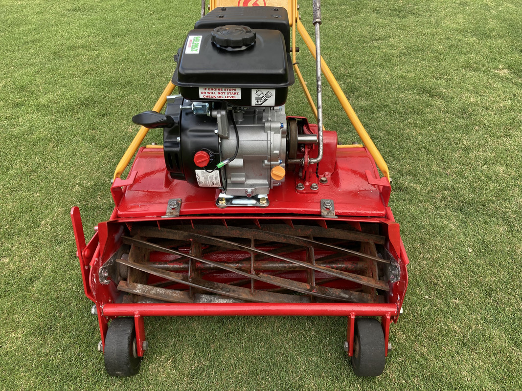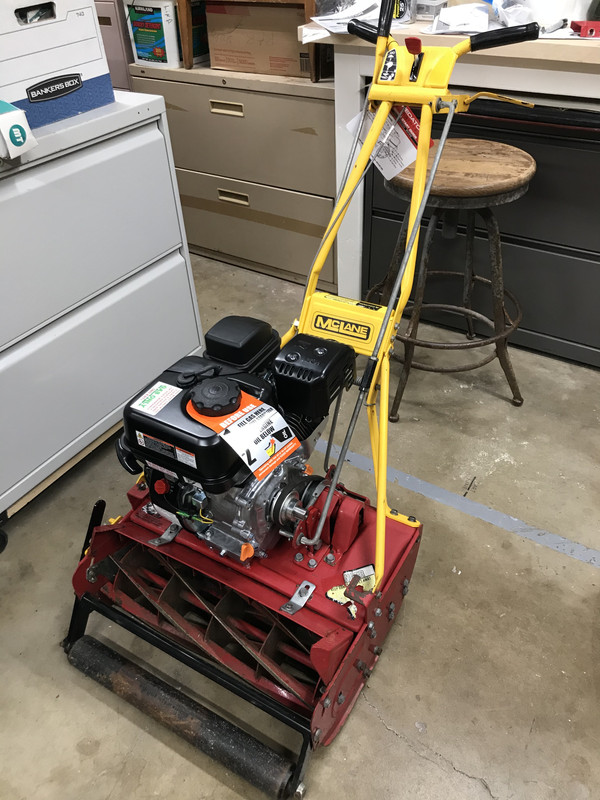 Motor: I went with a Harbor Freight Predator Engine just like in the video. The bolt patter matches up great. Mine is a 20" reel mower so I can't attest to other size mowers bolt patterns.