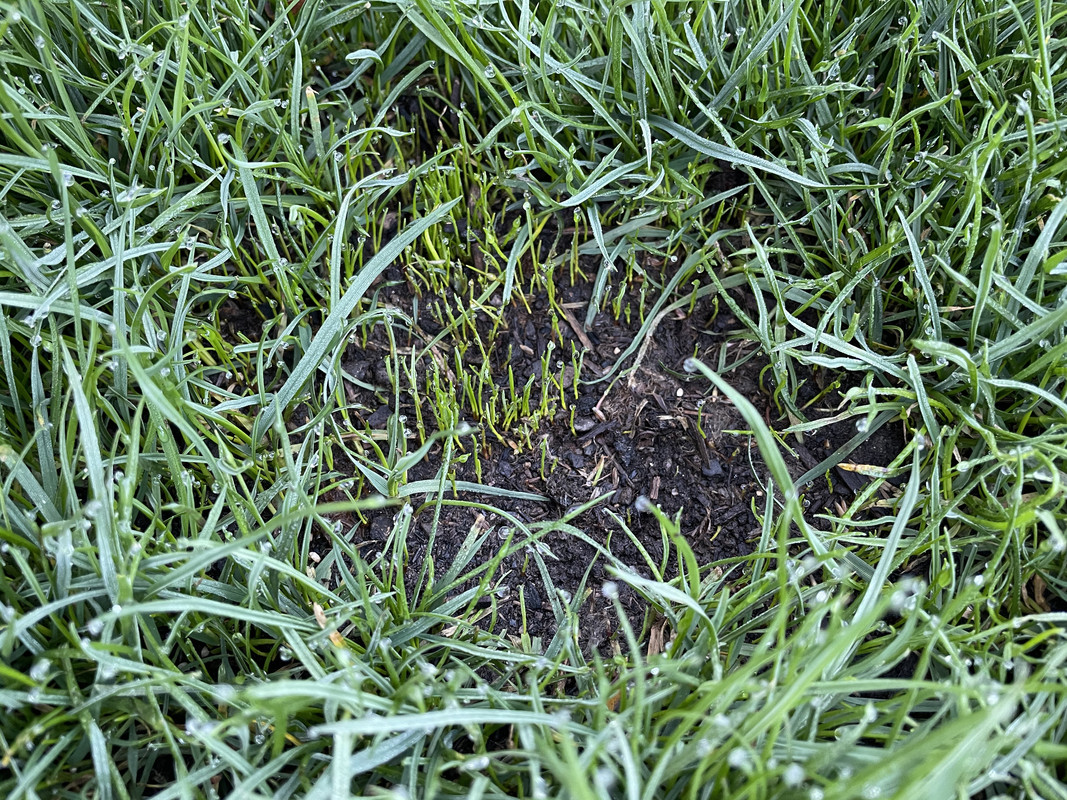 I want to overseed once the ground temperatures get a bit warmer (maybe in March?) to fill in those holes. I've already got a bag of SS9000 rye that I used to touch up some spots in the fall. I also want to do a bit of leveling too - the sod and underlying ground has settled a bit and you can tell where there are lower spots.
