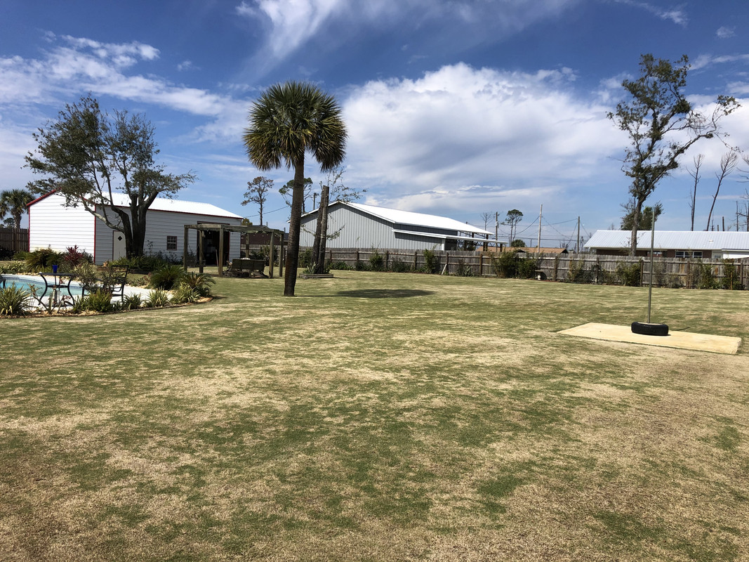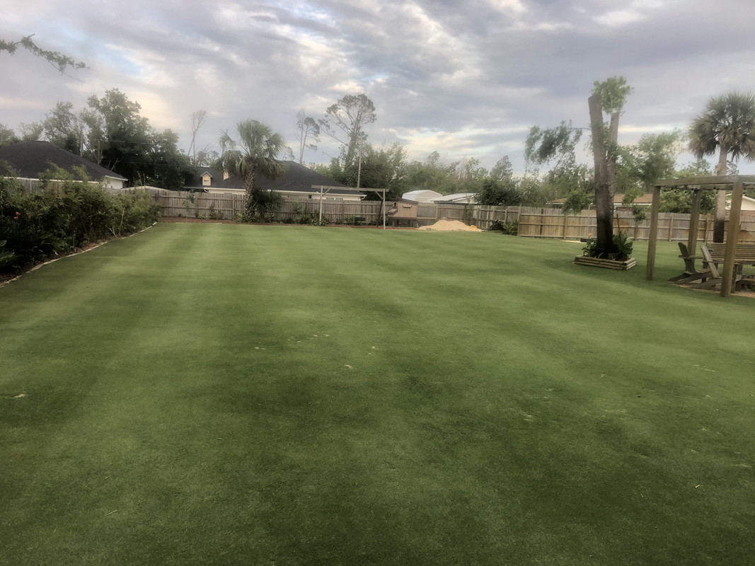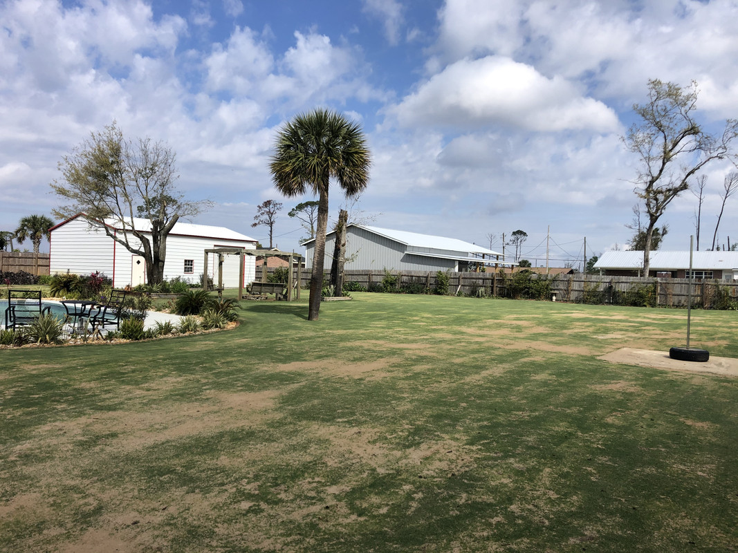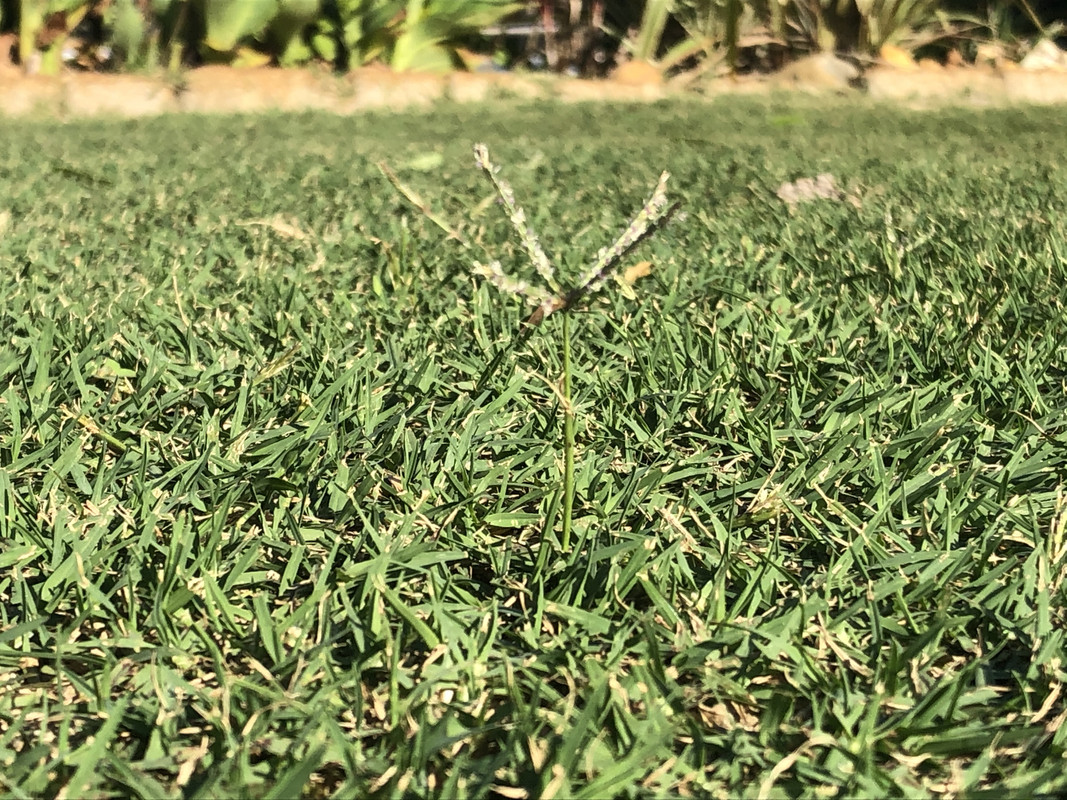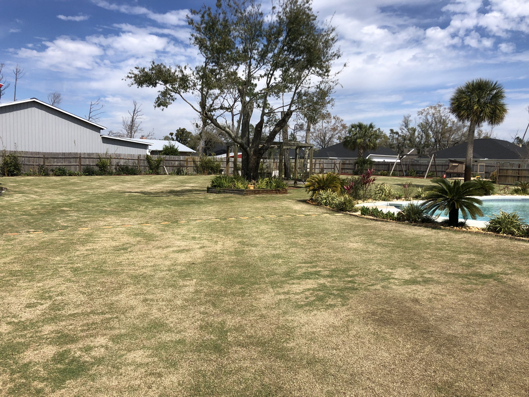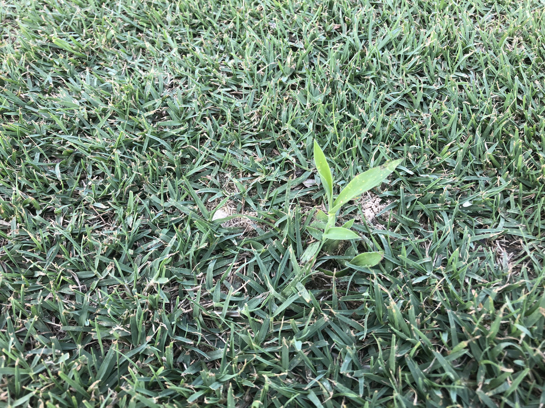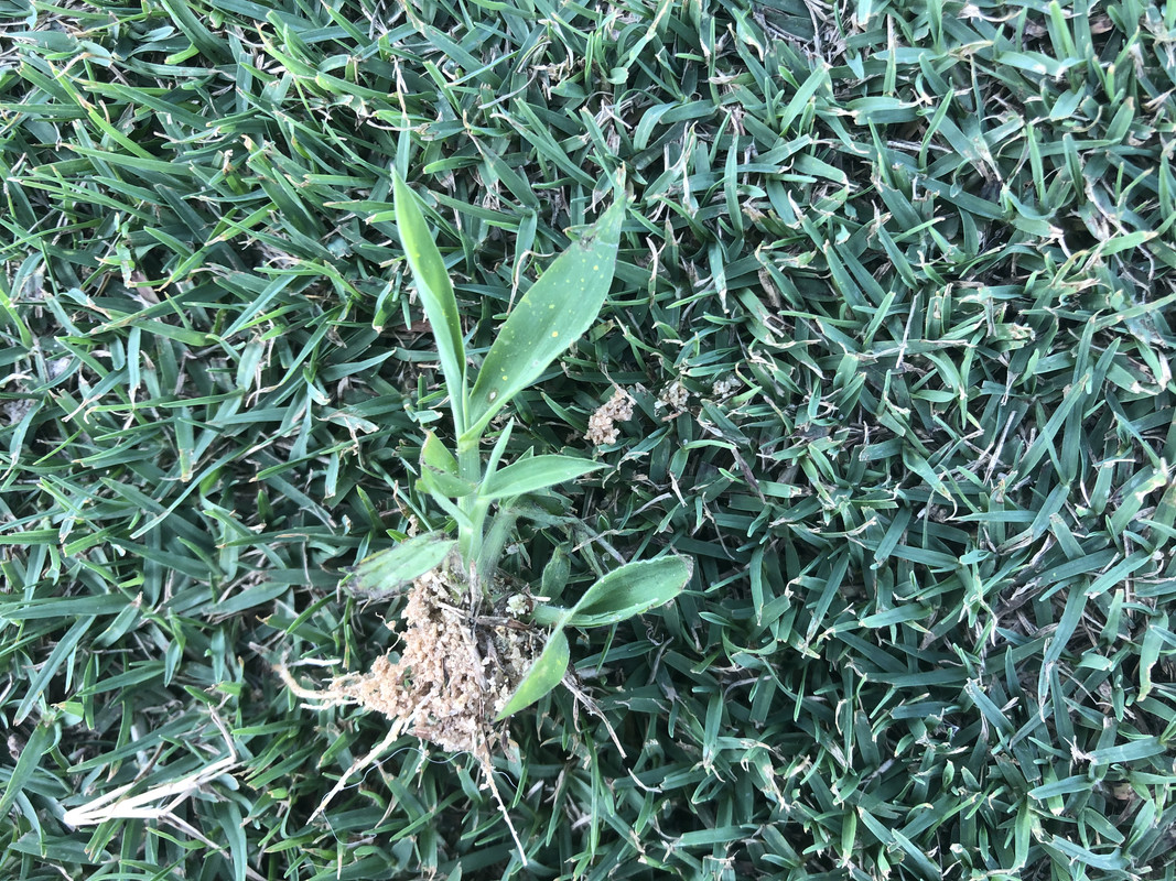 I hand pulled a 5-gallon bucket full of varied broadleaf weeds (bittercrest, Carolina geranium, chickweed?) along with some perennial blue-eye grass starting to germinate and popcorn tree seedlings that are trying to take hold. I then spot sprayed some green kyllinga that's hanging on from last season with Dismiss at .25oz/gallon.