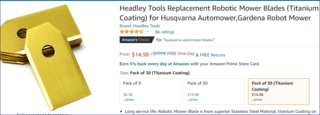 Bought these blades to try, which are considerable less $ than Husqvarna blades. I went through the orig set of factory blades and a three set pack of endurance blades from factory over this season. These from amazon are of lower quality and get beat up much more easily than factory blades based on my first use.