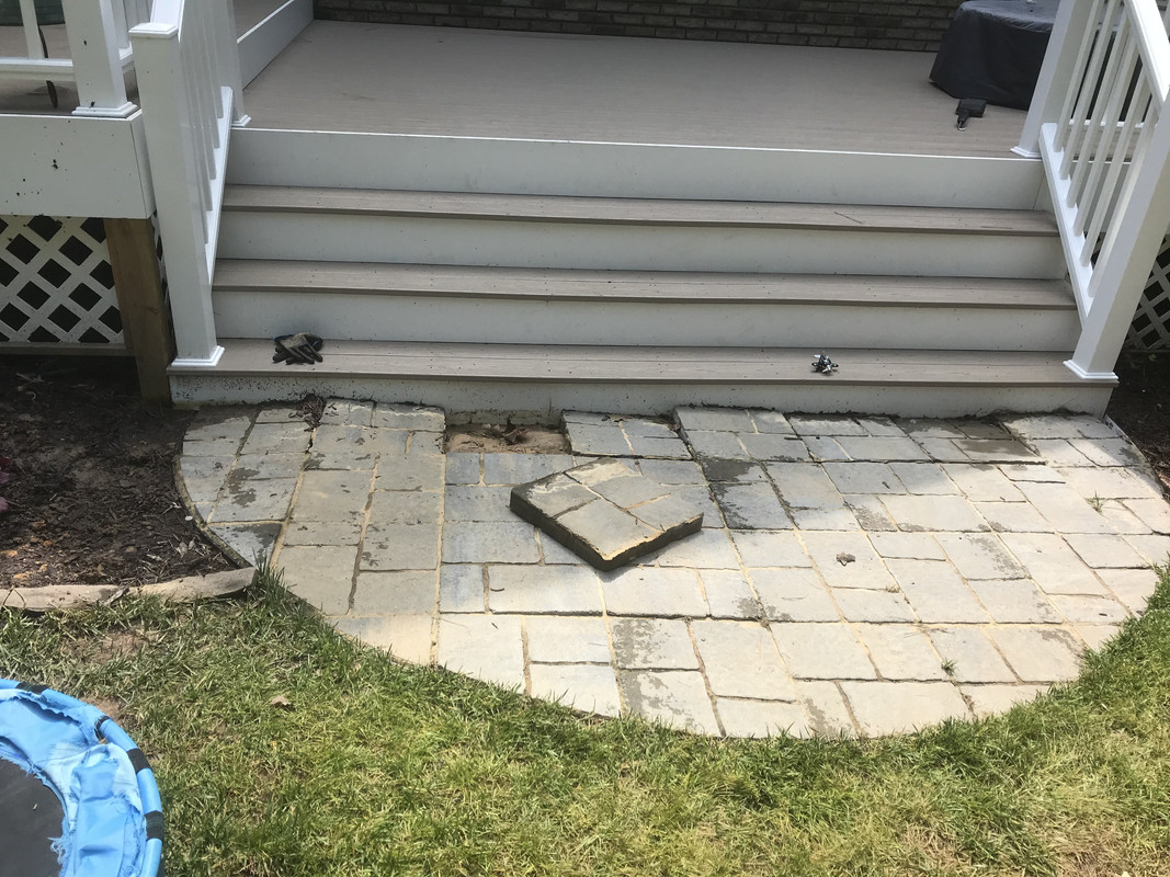 We expanded our deck last year and my wife wanted pavers put in at the landing of the steps. I felt I could do this myself but am now running into issues with the sand underneath washing out which has caused the first row of pavers to sink. While the yard slopes from left to right, I dug out/leveled the area, placed sand, pavers and then polyermic sand on top. I used paver edging for all areas except what was butting up against the step. Every hard rain we receive since and I can see sand wash out on the other end of the deck. Any way I can salvage this?