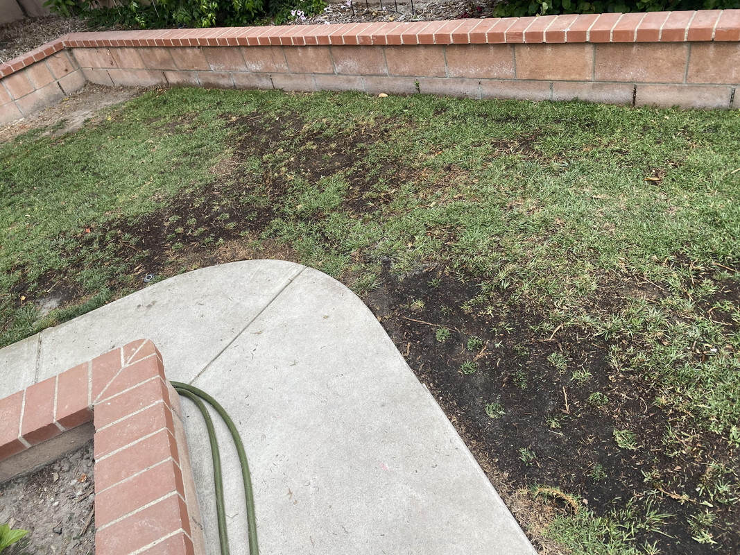 I noticed a couple problems from day one. The yard was always wet and soft and boggy in the shady patches.. We have 8 sprinkler zones serving the property from both front and rear yards and planters. Within the first week I noticed the all 8 zones were running for 10 minutes each every day. The whole property was being overwatered. The house had been vacant for months, so I have no idea how long this had been happening. I turned off the automatic timer and ran them manually as needed until I could get the sprinklers sorted. This revealed that almost every zone either had a at least one broken pipe or busted head and was flooding different areas of the yard. This explained the over saturation of the yard.