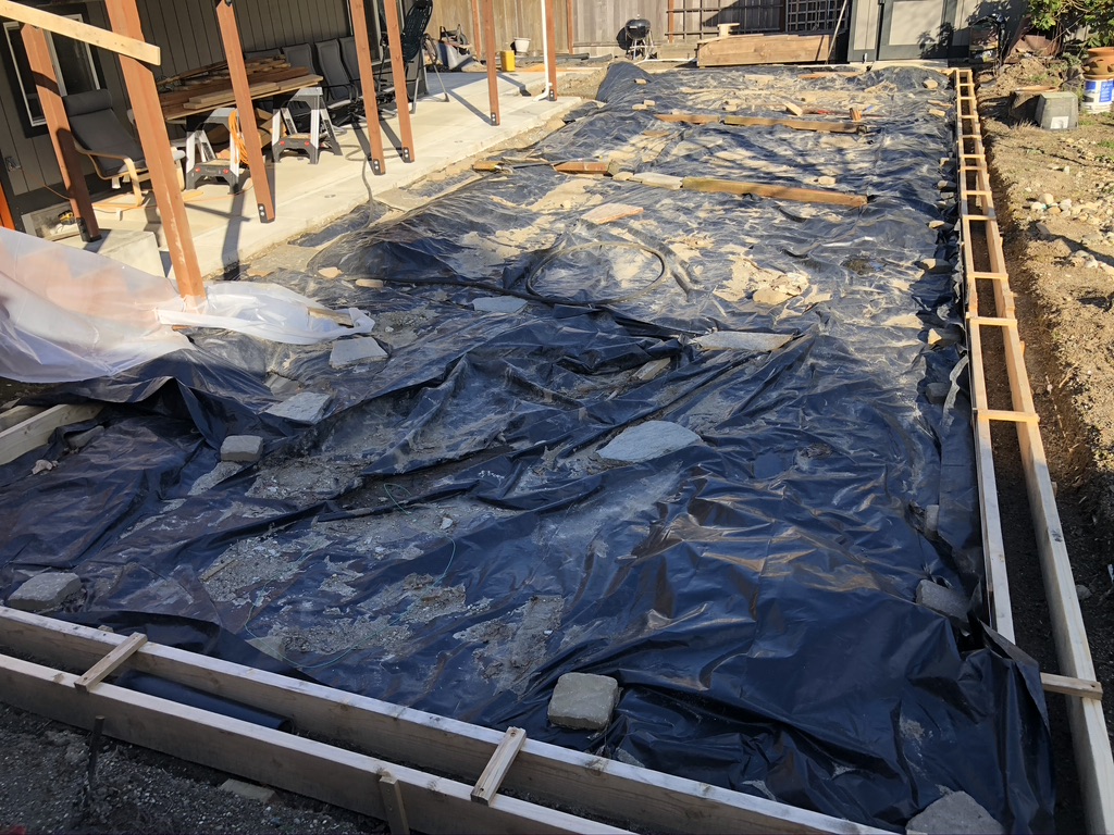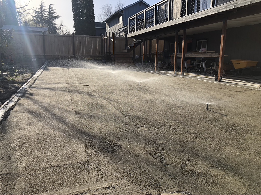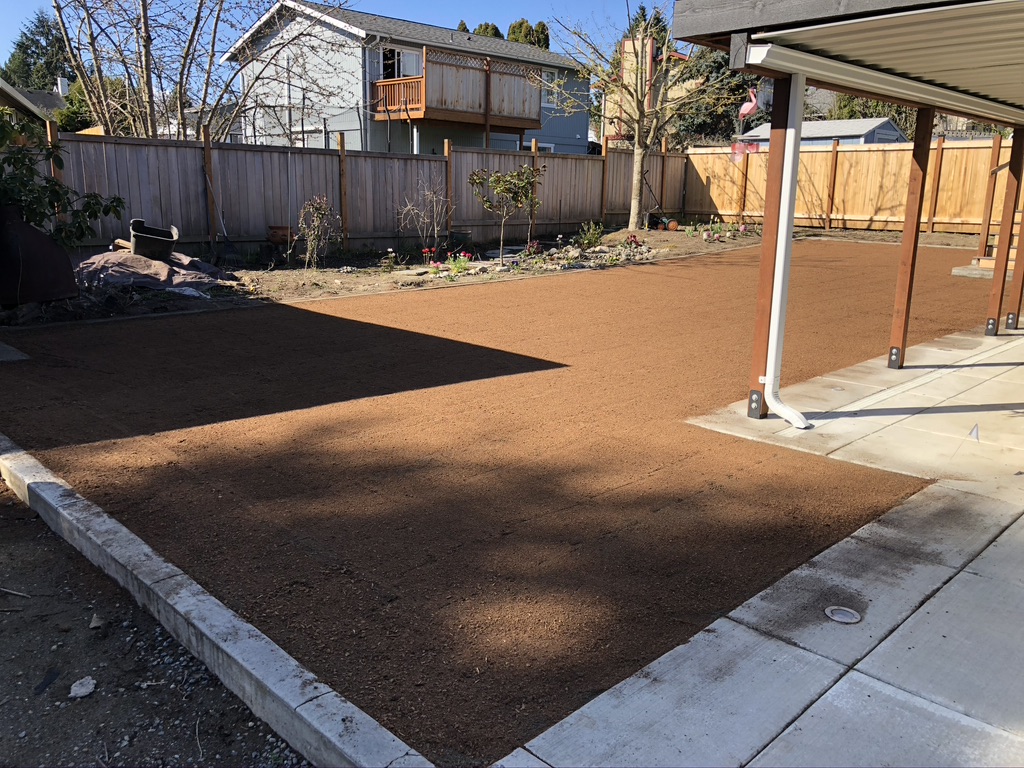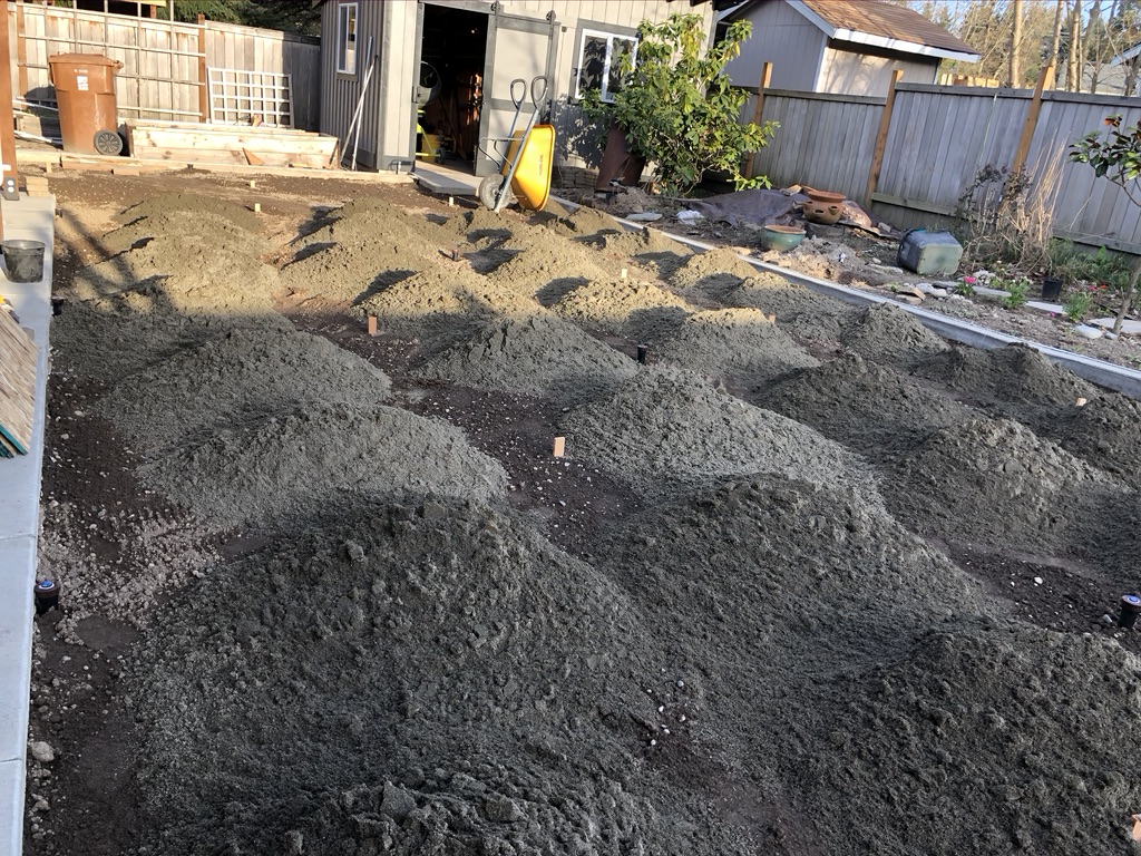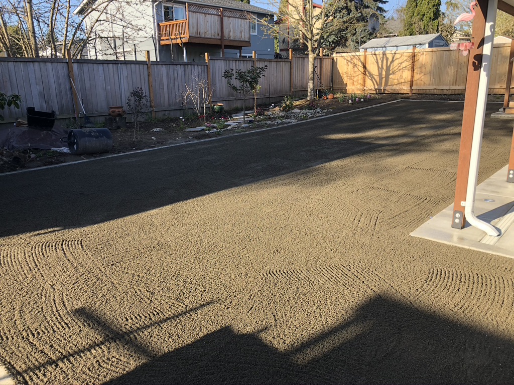 After removing 6" plus of my none draining clay I covered the whole area with 6 mil. plastic. This plastic would not move much for the next 2 months. While the PNW rain fell as it does often in the winter months I started drawing irrigation, subgrade drain, and perimeter curb.