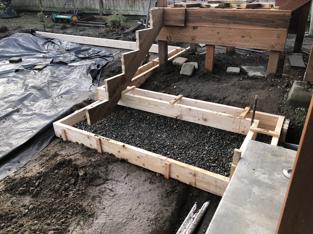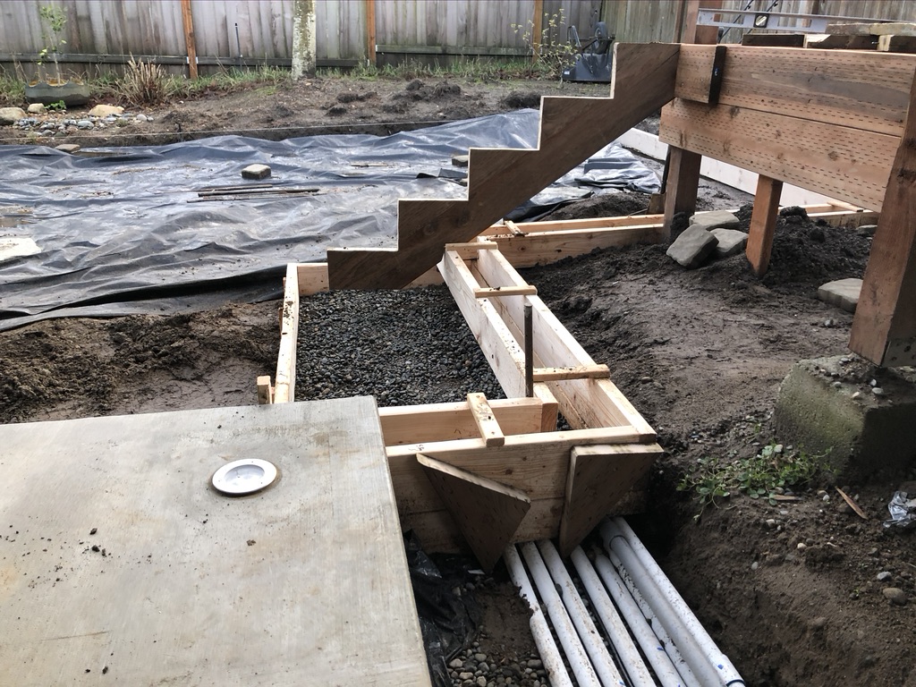 Once I had that stair landing poured, and after over a month of terrible weather it was time to start forming the rest of the perimeter curb. I am lucky I did this when I did for lumber prices were not through the roof yet! Fheeewwww