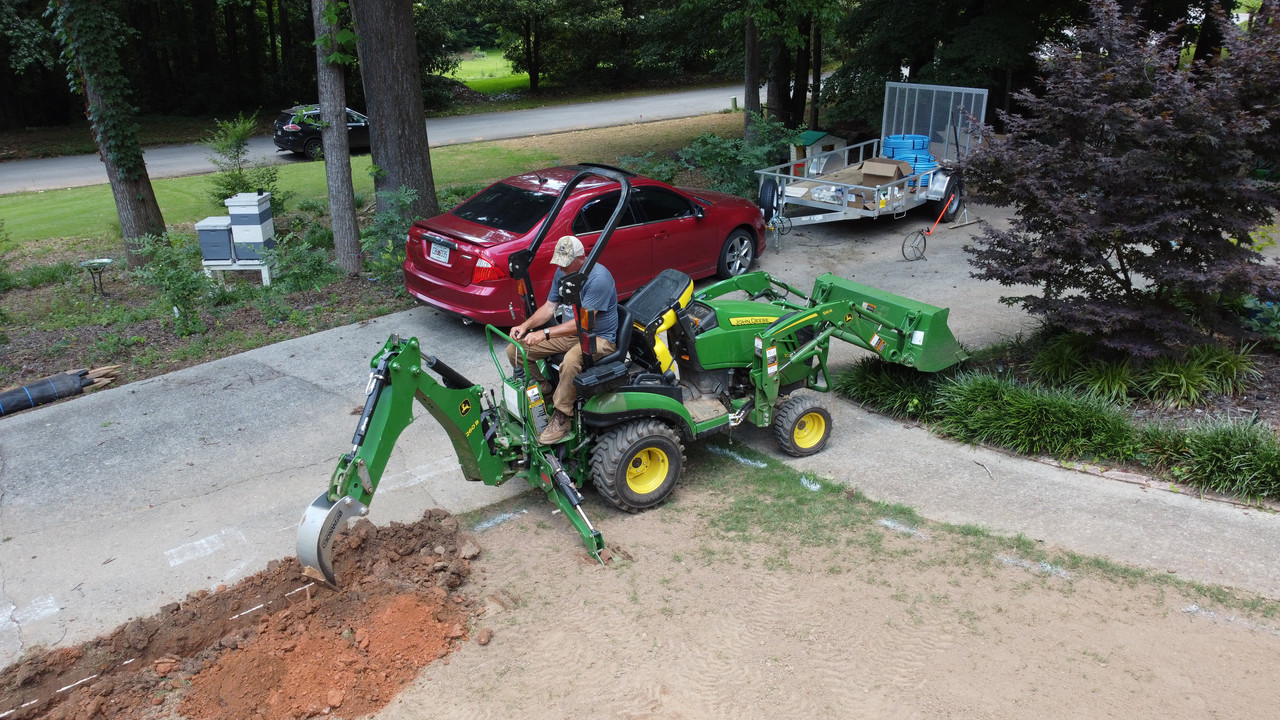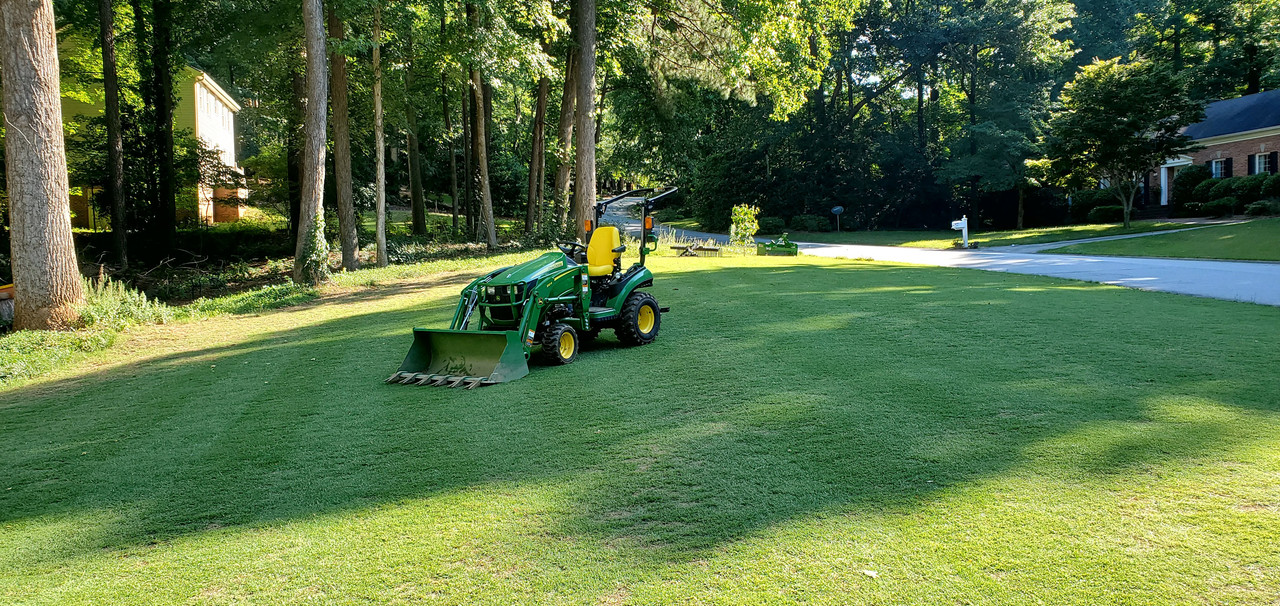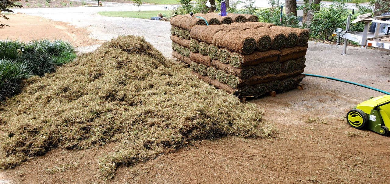 The plan this time is to install irrigation, use a box blade to cut a drainage swale, then a land plane and tractor rake to get the ground perfect. Of course there will be plenty of hand raking as well. Following in the footsteps of @WillyT, I'll use a SunJoe dethatcher to pull apart 3 pallets of Tahoma 31 and sprig the area (8500 sqft).