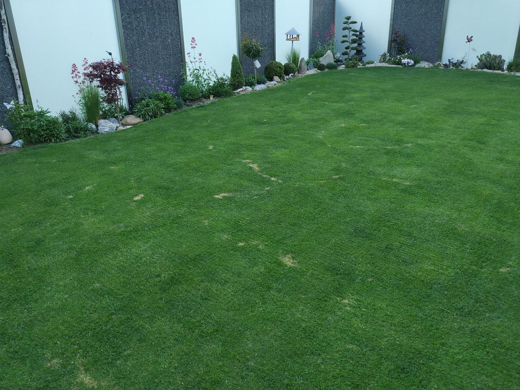 @bernstem. It does definitely not come from a squirrel or rabbit, those animals never come to housing zones here. We can only find those in the forest. I also think that more water just speeds up recovery and therefore dryness is not the cause of the yellow spots. Injury trough fert or herbicides can be excluded. I have not tried any fungicides.
